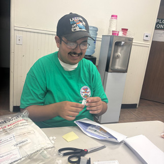 Several times a week, our volunteers arrive with enthusiasm and a smile, ready to help wherever they are needed. Their responsibilities include creating microchip packs, bagging dog food, folding laundry, and assisting with dishes—all tasks that keep the shelter running smoothly. These activities help our participants practice responsibility, teamwork, and hands-on learning in a supportive setting.